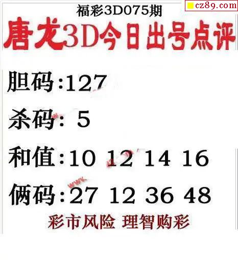 唐龙点评2026075期3d图谜