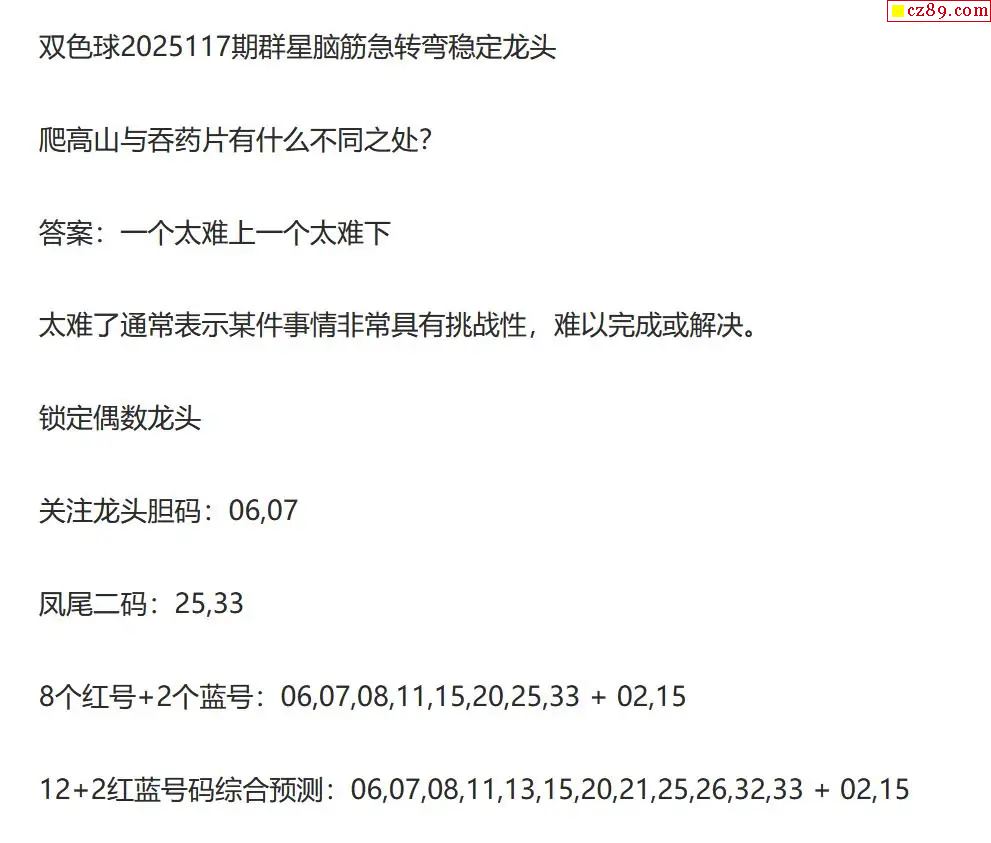 流年25年117期双色球动脑筋急转弯龙头字谜