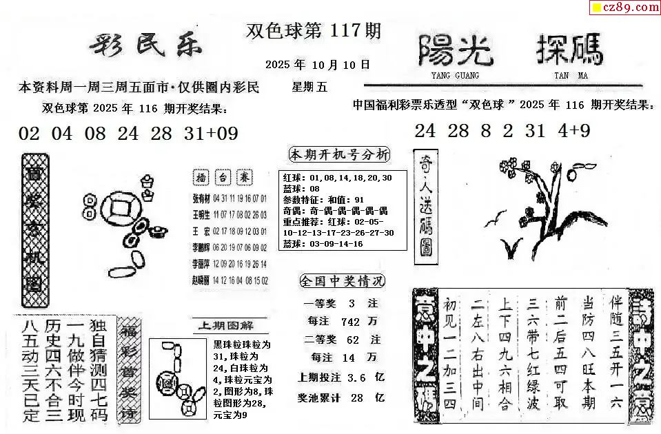 > 双色球2025117期 彩民乐+阳光探码图文版