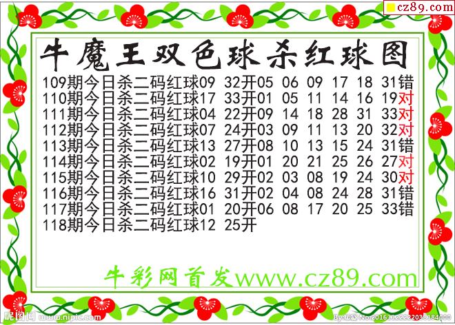 牛魔王杀两码红球118期双色球图谜