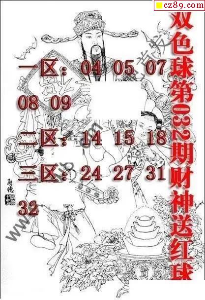 > 福彩双色球2026年032期财神送红球图谜